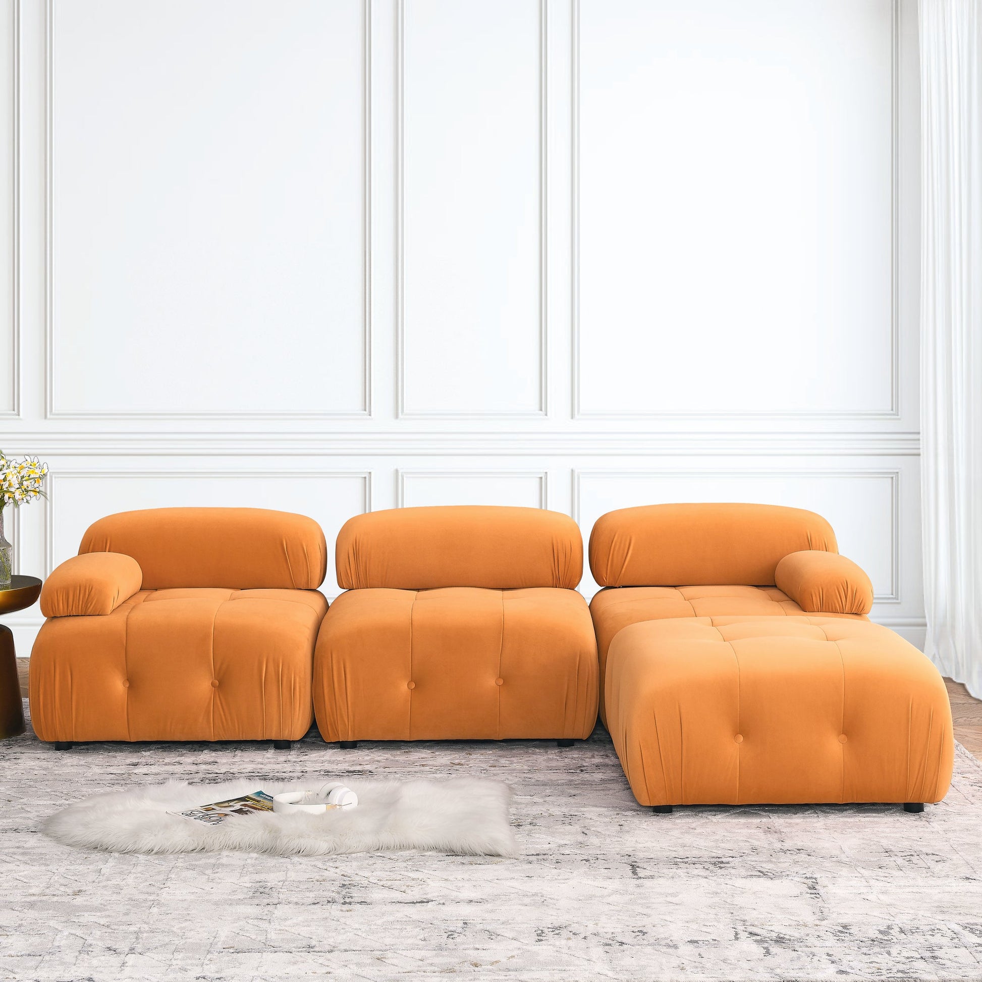 - Sturdy solid wood frame, soft velvet, filled with high-density sponge,button tufted design, making this sectional sofa beautiful and comfort, it can be perfectly matched with your apartment, house or conference room.